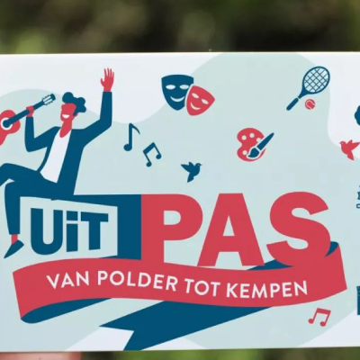- De UitPAS is een voordeelkaart die je kan kopen voor €5 (het standaardtarief).Je kan er punten mee sparen als je deelneemt aan vrijetijdsactiviteiten en diepunten kan je ruilen voor kortingen, cadeaus of gratis tickets. De pas is geldigin de regio Van Polder tot Kempen